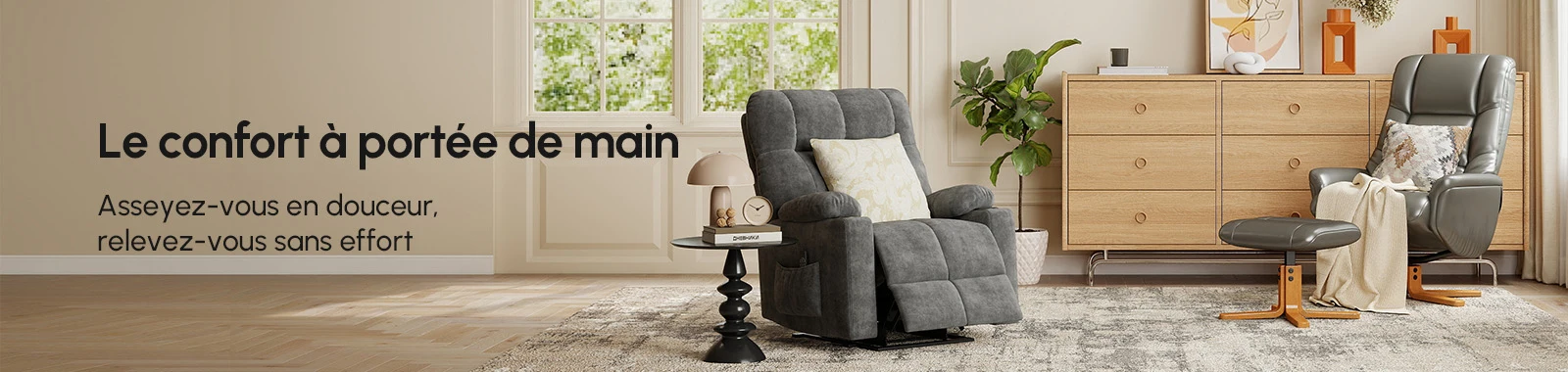 De longues heures assises peuvent compliquer le lever et raidir les articulations, laissant le dos endolori. Ce fauteuil releveur associe soutien de levée en douceur et fonction massage intégrée, soulage le dos et favorise la circulation pour un confort total.
