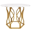 Table ronde pour 4 personnes, pieds de table élégants en métal, plateau en MDF, 80x80x76 cm, Blanc+Or