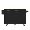 Îlot de cuisine avec plateau de table rabattable, desserte avec étagères à snacks et placards extensibles, 134,5x46/74x90,5 cm, Noir