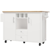 Îlot de cuisine avec table pliante, grand espace de rangement, casier à vin, porte-serviette et porte-épices, 137,9x45/73x92,2 cm, Blanc