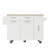 Îlot de cuisine avec plateau de table rabattable, desserte avec étagères à snacks et placards extensibles, 134,5x46/74x90,5 cm, Blanc