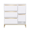 Buffet avec portes et étagères intérieures, tiroirs, poignées et pieds dorés, 120x38x80,5 cm, Blanc+Or