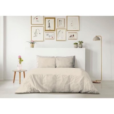 PARURE DE COUETTE LOVELY HOME - 240x260 cm - 100% COTON - BEIGE CREME
