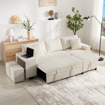 Canapé-lit pliant avec fonction couchage, port de charge USB, tablettes latérales et rangement, 231x131,5x84 cm, Beige
