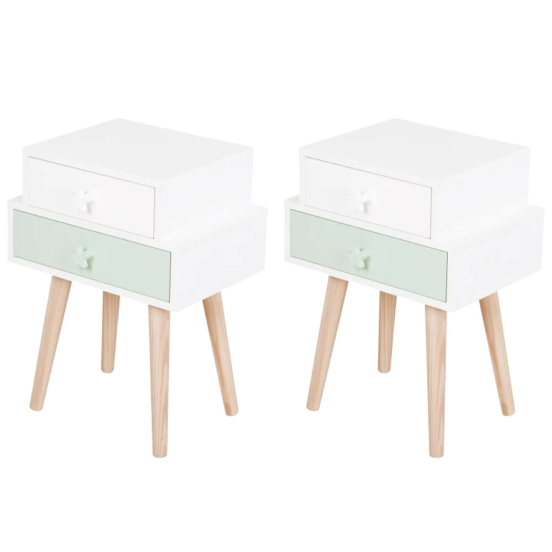 HOMCOM Lot de 2 chevets tables de nuit enfant design scandinave dim. 42L x 30l x 57H cm 2 tiroirs MDF blanc rose bois massif pin