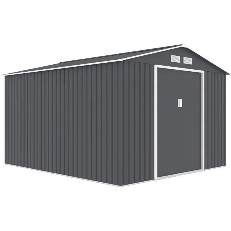 Abri de jardin en métal 8,84 m² - 277 x 319 x 202 cm - URANUS - Kit d'ancrage inclus, 2 portes coulissantes - Gris