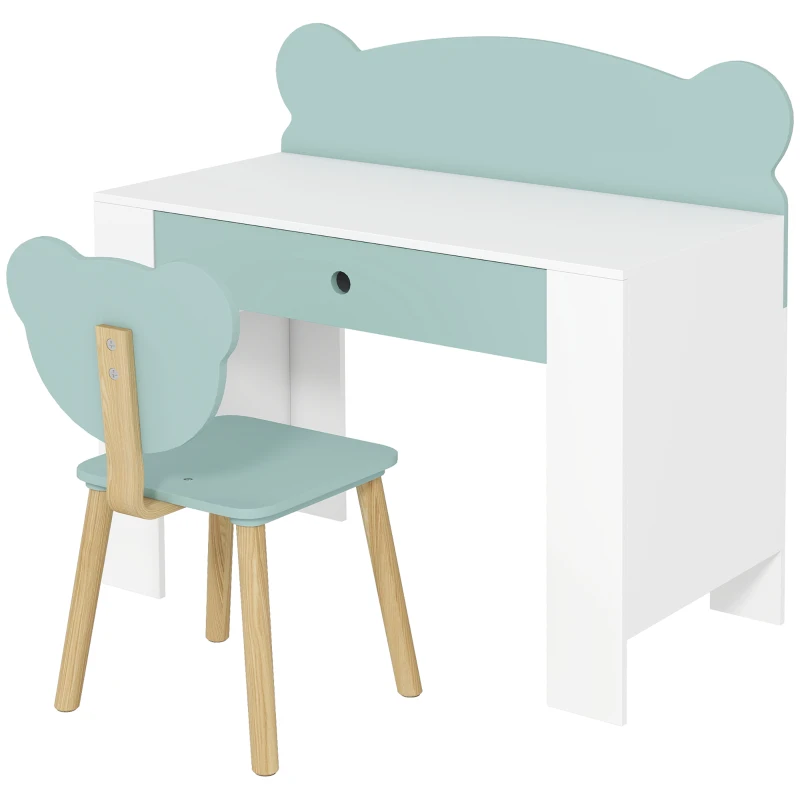 AIYAPLAY Bureau enfant avec chaise, table enfant et chaise avec tiroir et large plateau, 80 x 41 x 74,5 cm, vert