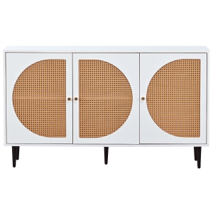 Buffet moderne avec 3 portes en rotin et poignées en métal, pour maison et bureau, Blanc