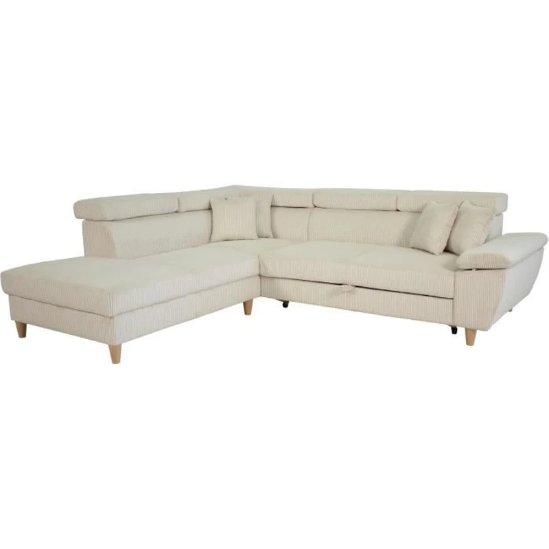 Canapé d'angle convertible - 4 places - WESTON - Velours côtelé beige - Tetieres réglables - 259 x 227 x 77/92 cm