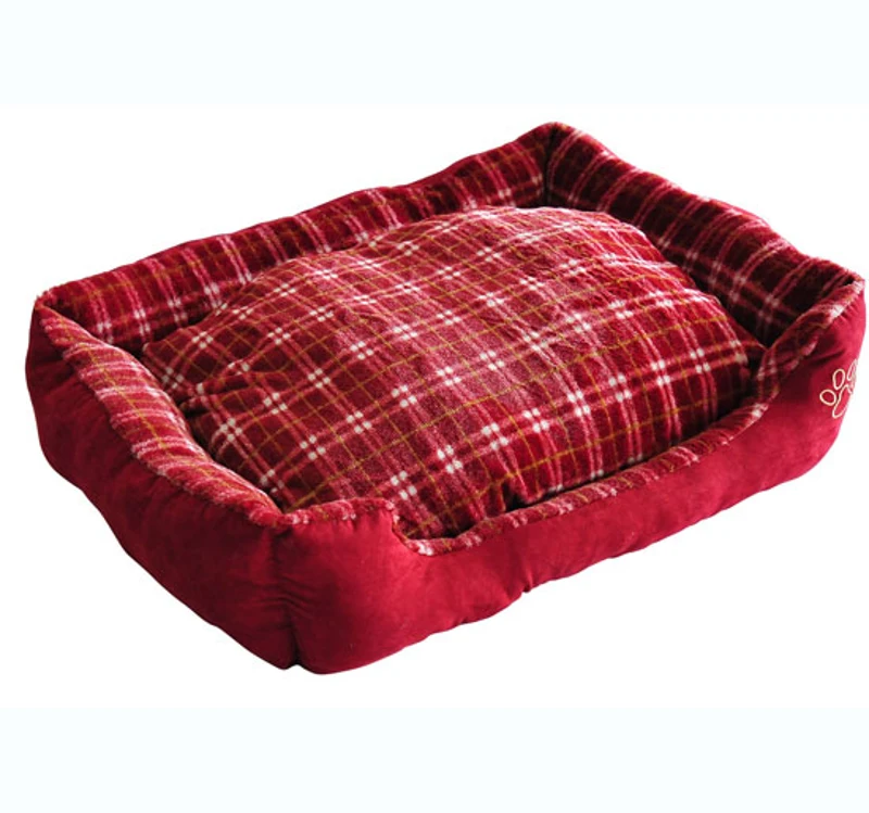 COUSSIN MATELAS CORBEILLE PANIER LIT LAVABLE POUR CHIEN CHIOT CHAT ROUGE A CARREAUX 120X100X27CM NEUF 16