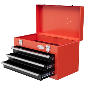 DURHAND Caisse boite à outils en métal transportable avec 3 poignées, 2 loquets, dim. 50L x 26l x 18,5H cm, bleu