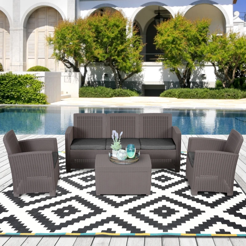 Outsunny Ensemble Salon de Jardin 5 Places Grand Confort Table Basse Rangement intégré Plastique PP Imitation rotin Noir Coussins Gris