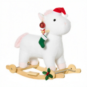 HOMCOM Cheval à Bascule modèle Lama Fonction vocale Bois peuplier Peluche Douce crème