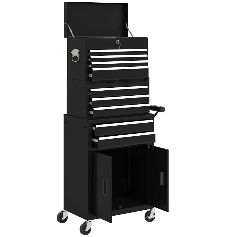 HOMCOM Coffre à outils 3-in-1, armoire à outils sur 4 roues, coffre verrouillable avec 9 tiroirs, acier, Noir