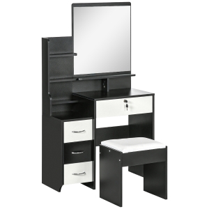 HOMCOM Coiffeuse Table de maquillage moderne - Miroir LED réglable intégré - Tabouret Inclus - pied en métal Noir - 2 tiroirs + 1 Organisateur Imitation Bois Noyer foncé