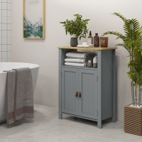 kleankin Bas SDB Multi-Rangements Gris/Naturel Double Porte