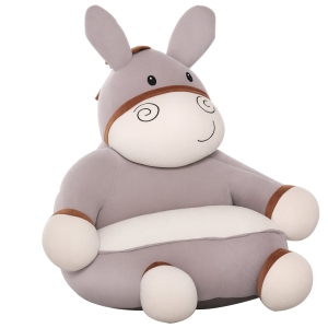HOMCOM Fauteuil Enfant âne dim. 60L x 55l x 60H cm garnissage Moelleux Coton revêtement Velours Gris crème