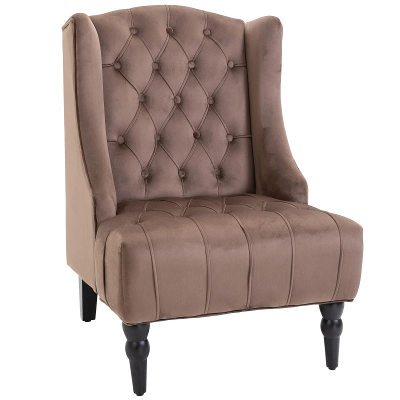 Homcom Fauteuil Chesterfield grand confort dossier assise capitonné avec boutons velours marron