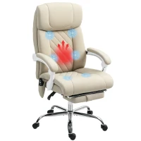 HOMCOM Fauteuil de Bureau de Massage avec Dossier Haut Inclinable avec Chaleur Lombaire Repose-Pieds et Roues 66x70x112-120 cm Beige