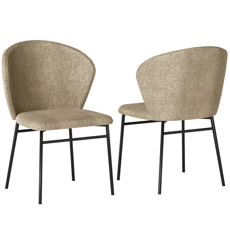 HOMCOM Lot de 2 chaises de salle à manger assise rembourrée en tissu aspect lin pieds en acier stable design moderne marron clair