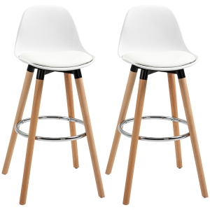 HOMCOM Lot de 2 tabourets de bar, chaises hautes, revêtement synthétique avec dossier et pieds en bois, noir