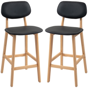 HOMCOM Lot de 2 tabourets de bar, chaises hautes, revêtement synthétique avec dossier et pieds en bois, noir