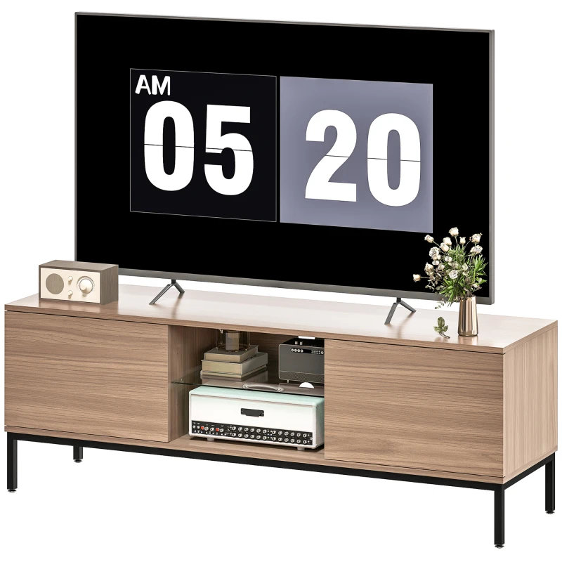 HOMCOM Meuble TV meuble télé pour téléviseur jusqu'à 60 pouces avec 2 portes et étagère en verre réglable 140x40x49,5cm gris