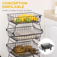 HOMCOM Panier de fruits et légumes avec roues corbeille à fruits à 5 niveaux empilables acier, 40 x 28 x 97 cm noir