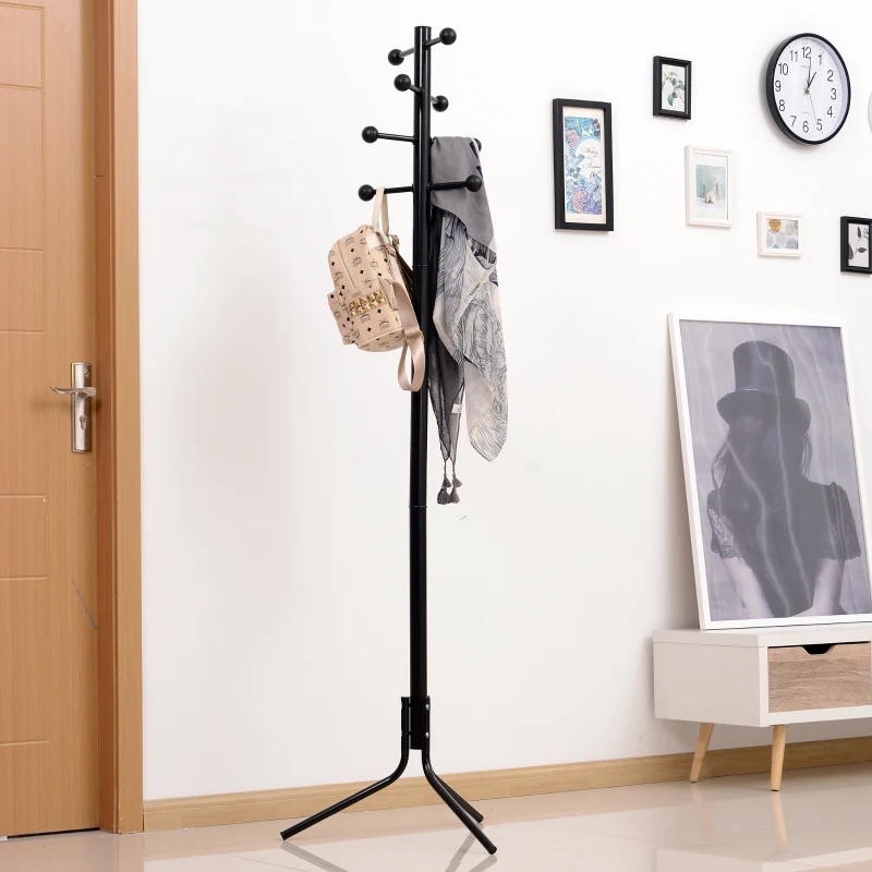 HOMCOM Porte-manteau trépied design contemporain boules 8 patères dim. 50L x 50l x 180H cm métal noir