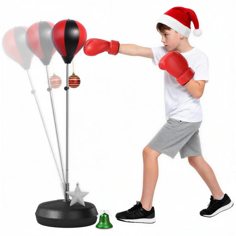 HOMCOM Sac de Frappe sur Pied Punching ball sur pied réglable en hauteur 126-144 cm avec gants, pompe et base de lestage pour adolescents et débutants noir et rouge
