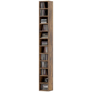 HOMCOM Rangements pour CD et DVD avec 12 compartiments, capacité max. 204 CD, 21 x 20 x 175 cm, brun rustique