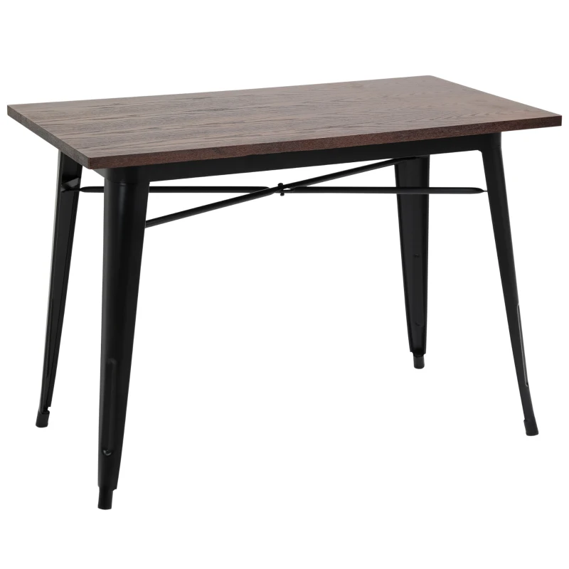 HOMCOM Table à manger design industriel 6 pers. - dim. 110 x 60 x 75 cm - métal noir panneaux multicouches imitation bois chêne foncé