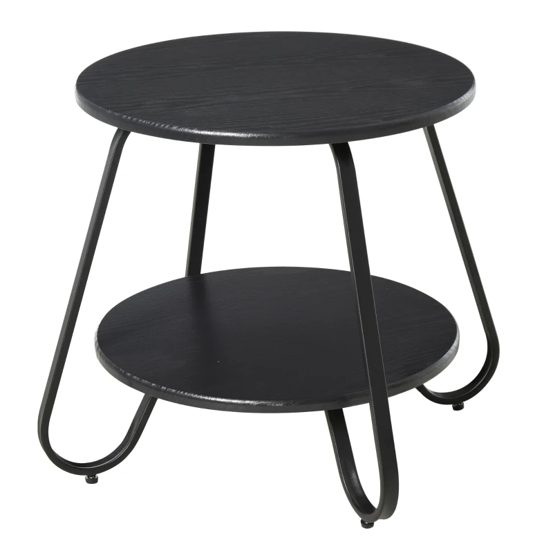 Table basse bout de canapé design néo-rétro 2 niveaux métal aspect bois