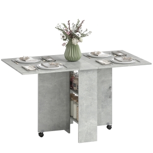 HOMCOM Table de cuisine pliable table à manger pliante 2 plateaux rabattables avec 2 tiroirs 1 placard et 1 étagère de rangement 120 x 60 x 76,5 cm - gris