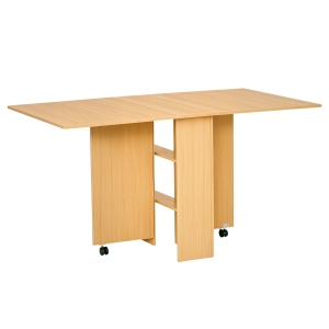 HOMCOM Table de salle à manger pliante sur roulettes avec rangement 2 tiroirs et 1 placard 76 x 140 x 74 cm