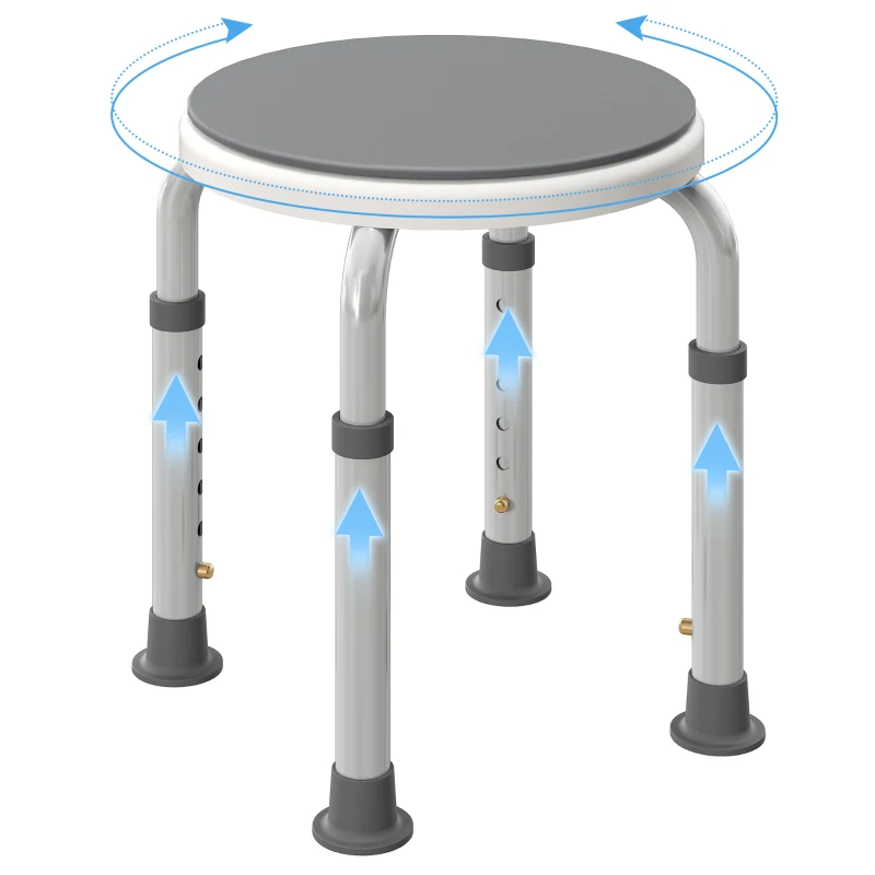 HOMCOM Tabouret de douche siège de douche antidérapant tabouret de bain hauteur réglable pivotant à 360° en aluminium