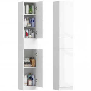 kleankin Meuble colonne rangement salle de bain style contemporain 2 placards 3 étagères et 1 tiroir coulissant panneaux particules brillant dim. 30l x 28P x 170H cm blanc laqué
