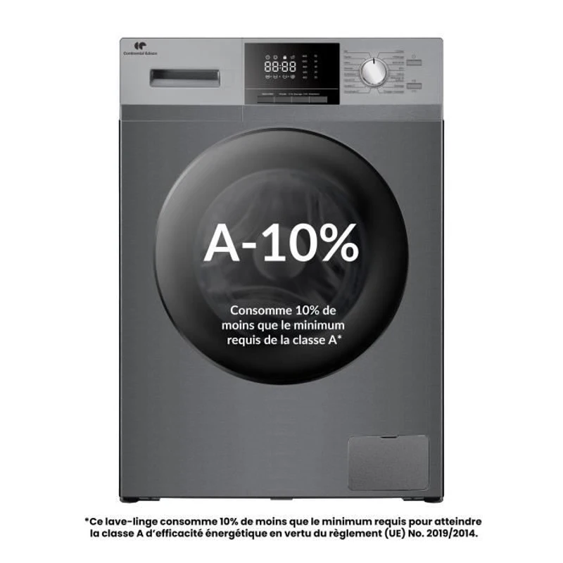 Lave-linge hublot - CONTINENTAL EDISON - CELL8140IS1 - 8kg - Moteur induction - 60 cm - 1400 trs/min - Silver
