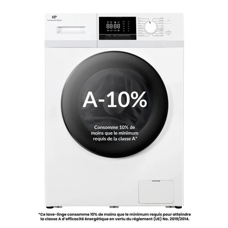 Lave-linge hublot - CONTINENTAL EDISON - CELL8140IW1 - 8kg - Moteur induction - 60 cm - 1400 trs/min - Blanc