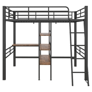 Lit mezzanine 140x200 cm en métal avec bureau et étagères, pour enfants et adultes, sans matelas, Noir