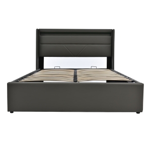 Lit rembourré 140x200 cm avec sommier à lattes, design minimaliste sans tête de lit, 4 tiroirs pour rangement, sans matelas, Gris
