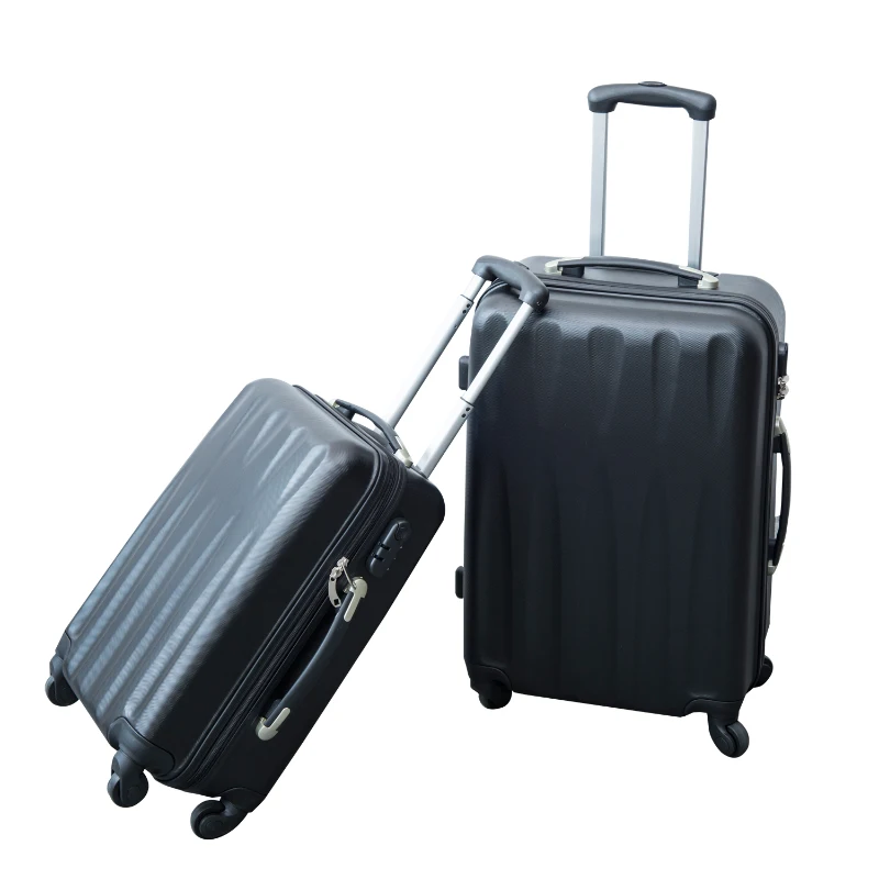 Lot de 2 valises rigides de voyage trolley bagage a roulettes 360 degres abs noir 66cm 55l / 57cm 35l neuf 21