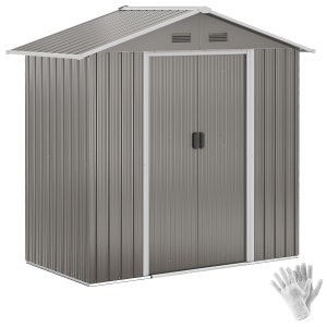 Outsunny Abri de jardin 2,42m² en métal avec toit en pente cabane de jardin abri à outils fondation en acier galvanisé incluse - 2 portes coulissantes et fondation - 213 x 130 x 173 cm