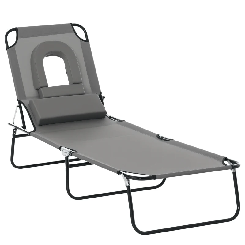 Outsunny Bain de Soleil Pliable transat inclinable 4 Positions Chaise Longue 3 Coussins fournis Gris