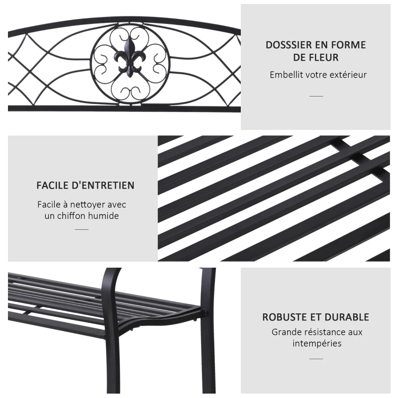 Outsunny Banc de Jardin 3 Places Style néo-rétro Fer forgé Motif Fleurs de lys dim. 129L x 50l x 91H cm métal époxy Noir