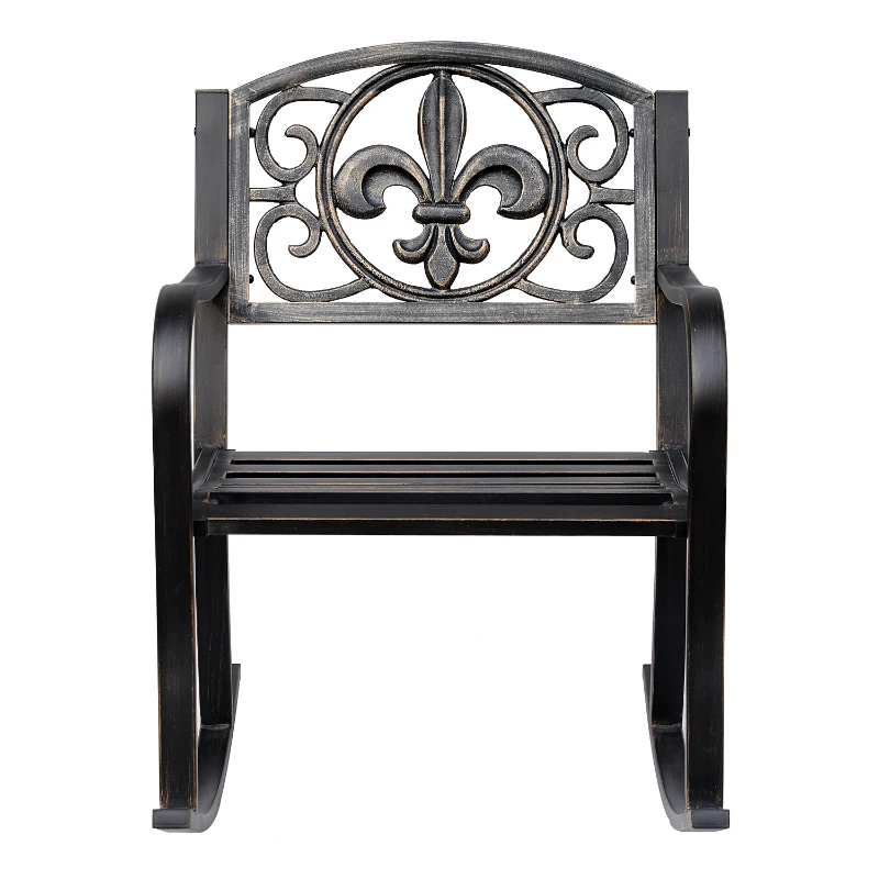 Outsunny Chaise à Bascule Chaise de Jardin Fauteuil à Bascule Antique Jardin Métal Bronze L60 x P73 x H85cm
