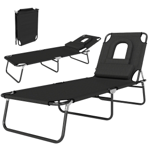 Outsunny Bain de Soleil transat Pliable Dossier réglable Multipositions métal et Polyester Bleu