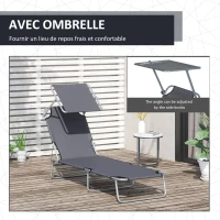 Outsunny Transat Bain de Soleil Pliable Chaise Longue Pliante Grand Confort Dossier Inclinable Multi-positions et Pare-Soleil réglable Dim. 187L x 58l x 36H cm gris