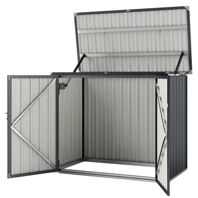 Outsunny Coffre à poubelles pour 2 poubelles verrouillable Housse avec couvercle rabattable Gris foncé