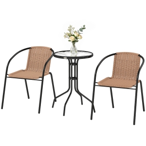 Outsunny Ensemble de meubles de jardin 3 pièces avec 2 fauteuils + 1 table basse carrée coussins inclus